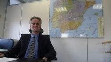 Llegó a España en agosto de 2012, pero trabaja desde 1994 como Consejero Comercial para Estados Unidos. En su oficina nos recibe su colaboradora Helen Crowley, especialista en comercio internacional que asesora a muchas empresas españolas para implantarse en Estados Unidos.