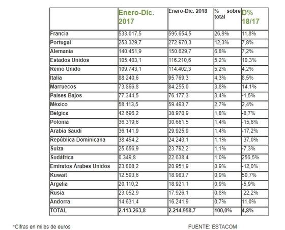 A destacar el espectacular incremento de Francia, Estados Unidos y Marruecos, que han aumentado sus importaciones de mueble español en 2018 a más de dos dígitos.