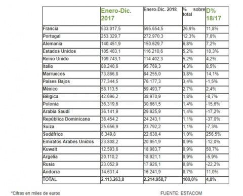 Otras CC.AA. que también han visto crecer sus exportaciones en 2018 de manera importante han sido Andalucía (+15,4%), País Vasco (+7,3%) y Madrid (+8,1%).