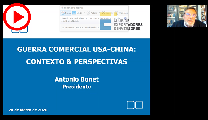 Antonio Bonet, presidente del Club de Exportadores e Inversores, ha analizado en un webinario la guerra comercial entre ambos países.