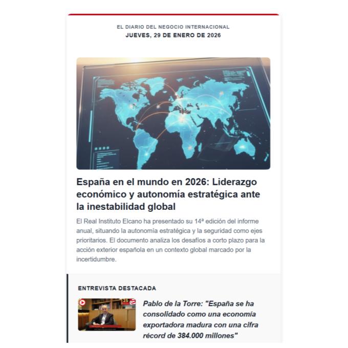 Boletín informativo diario de noticias del negocio y comercio exterior de España con el resumen de lo más destacado del día.