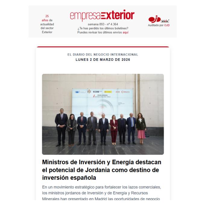 Boletín informativo diario de noticias del negocio y comercio exterior de España con el resumen de lo más destacado del día.