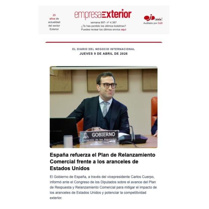 Boletín informativo diario de noticias del negocio y comercio exterior de España con el resumen de lo más destacado del día.
