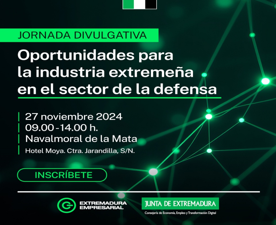 La Consejería de Economía, Empleo y Transformación Digital, a través de la Dirección General de Empresa, ha organizado una jornada divulgativa para dar a conocer a las empresas extremeñas el potencial que ofrece el sector de la defensa en diferentes ámbitos como la tecnología, la investigación, la industria textil, la alimentaria o la ingeniería, con la posibilidad de convertirse en un motor de crecimiento económico y generación de empleo.