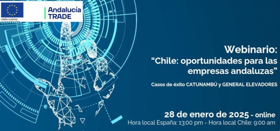 El seminario se realiza en colaboración con la antena de Andalucía Trade en Chile y tiene por objetivo presentar y reflexionar sobre las oportunidades y claves para abordar el mercado chileno a través del siguiente programa y ponentes que compartirán su experiencia e información.