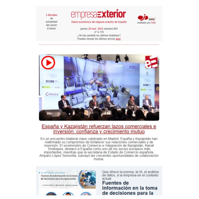 Boletín informativo diario de noticias del negocio y comercio exterior de España con el [...] Leer más...