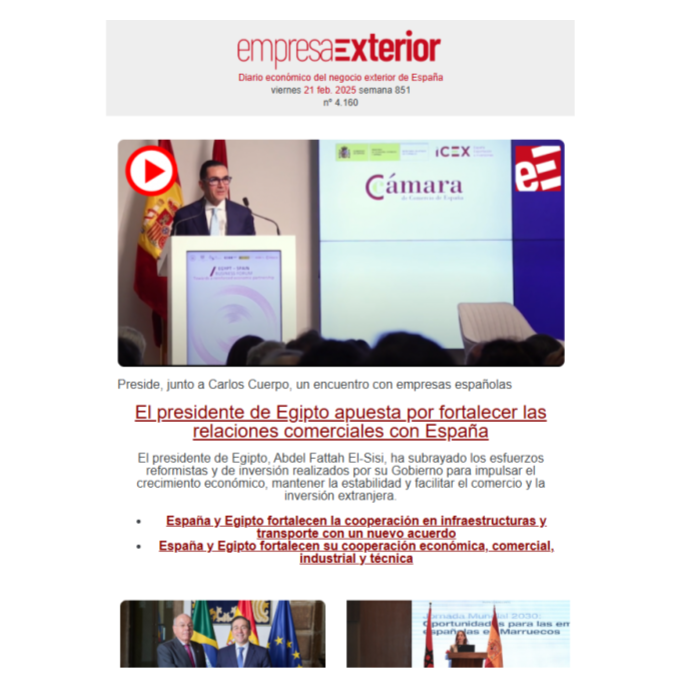 Boletín informativo diario de noticias del negocio y comercio exterior de España con el [...] Leer más...