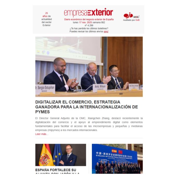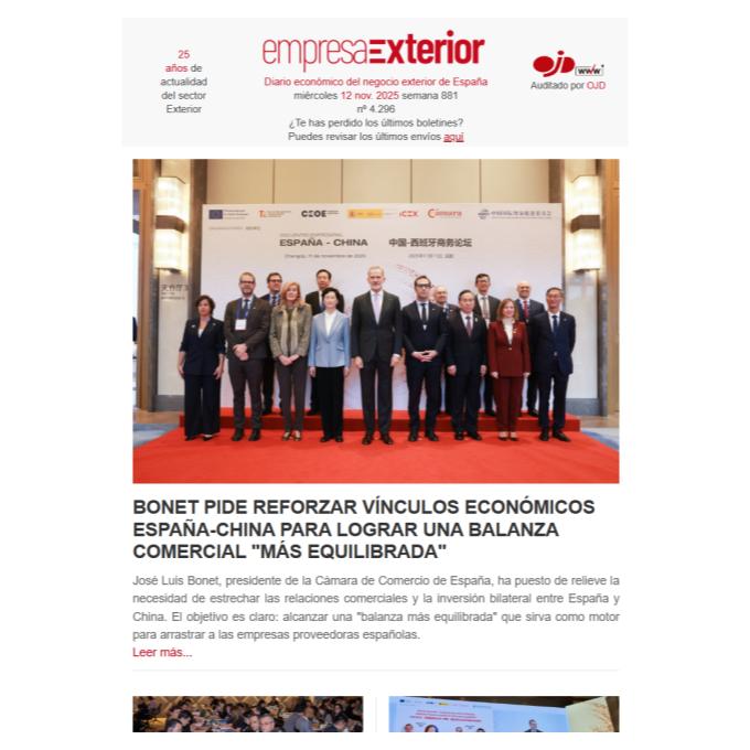 Boletín informativo diario de noticias del negocio y comercio exterior de España con el [...] Leer más...