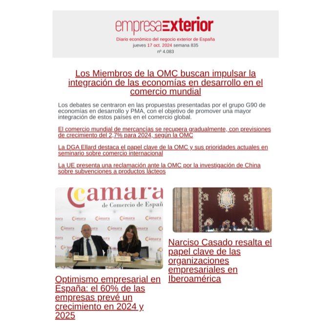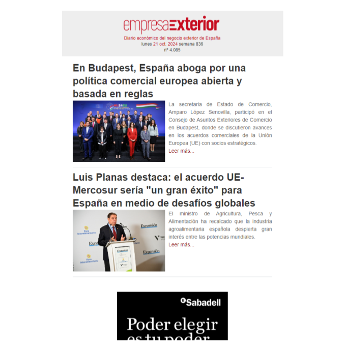 Boletín informativo diario de noticias del negocio y comercio exterior de España con el [...] Leer más...