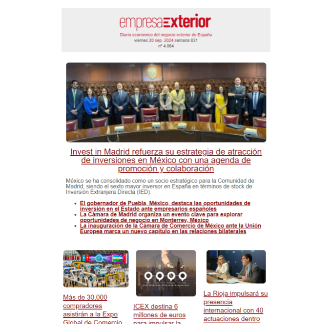Boletín informativo diario de noticias del negocio y comercio exterior de España con el [...] Leer más...